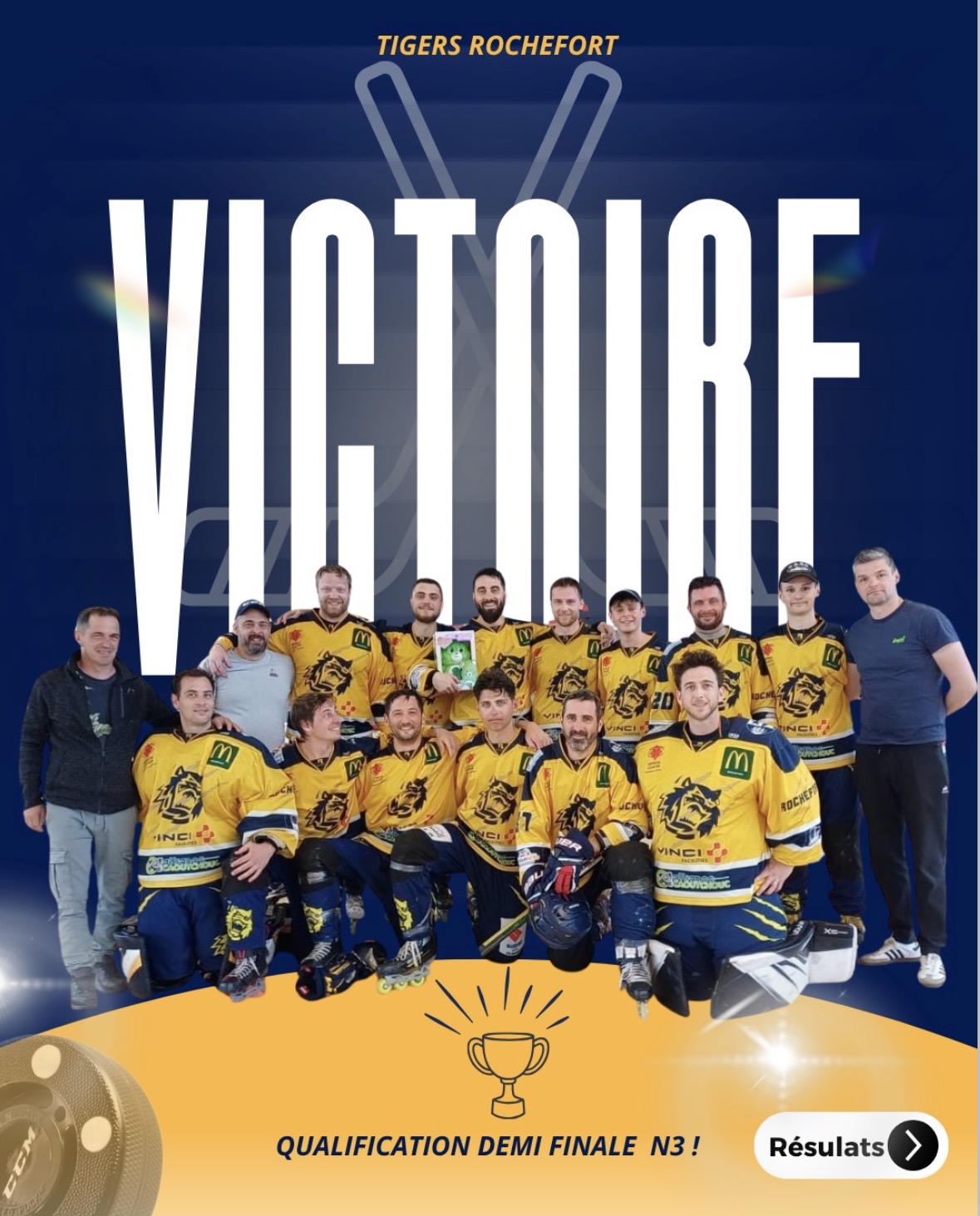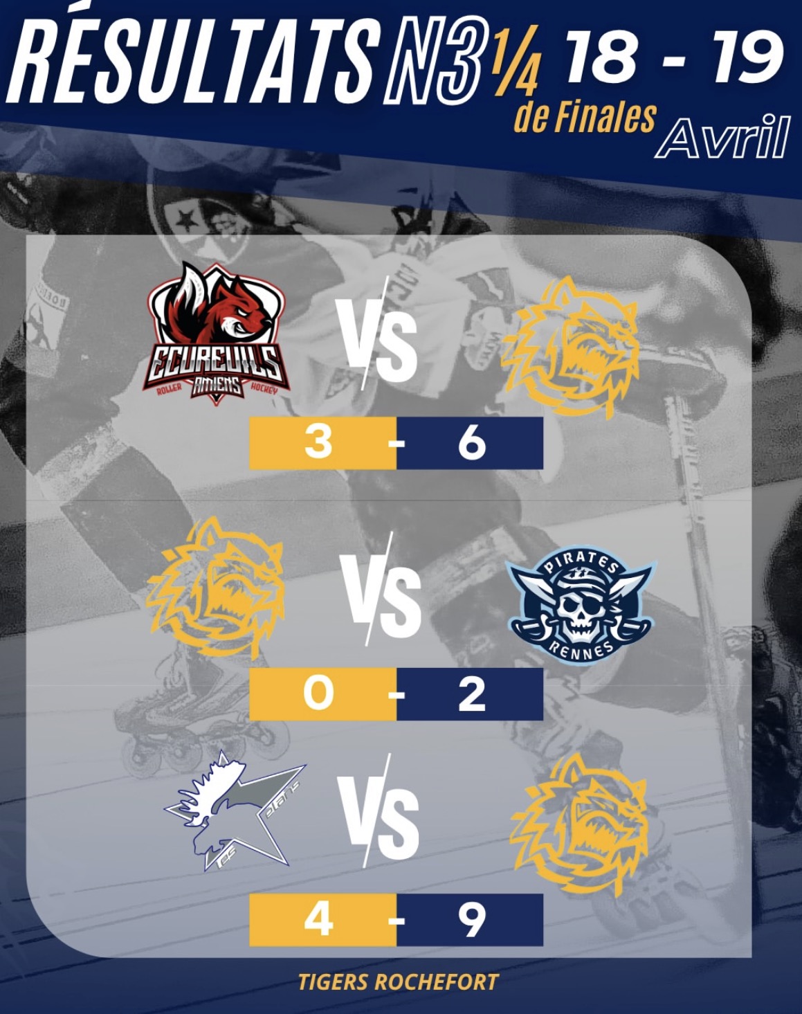 La suite s’annonce électrisante. Les quarts de finale approchent, et les Tigers seront bien de la partie. À vos patins, les gars — Rochefort rugit !